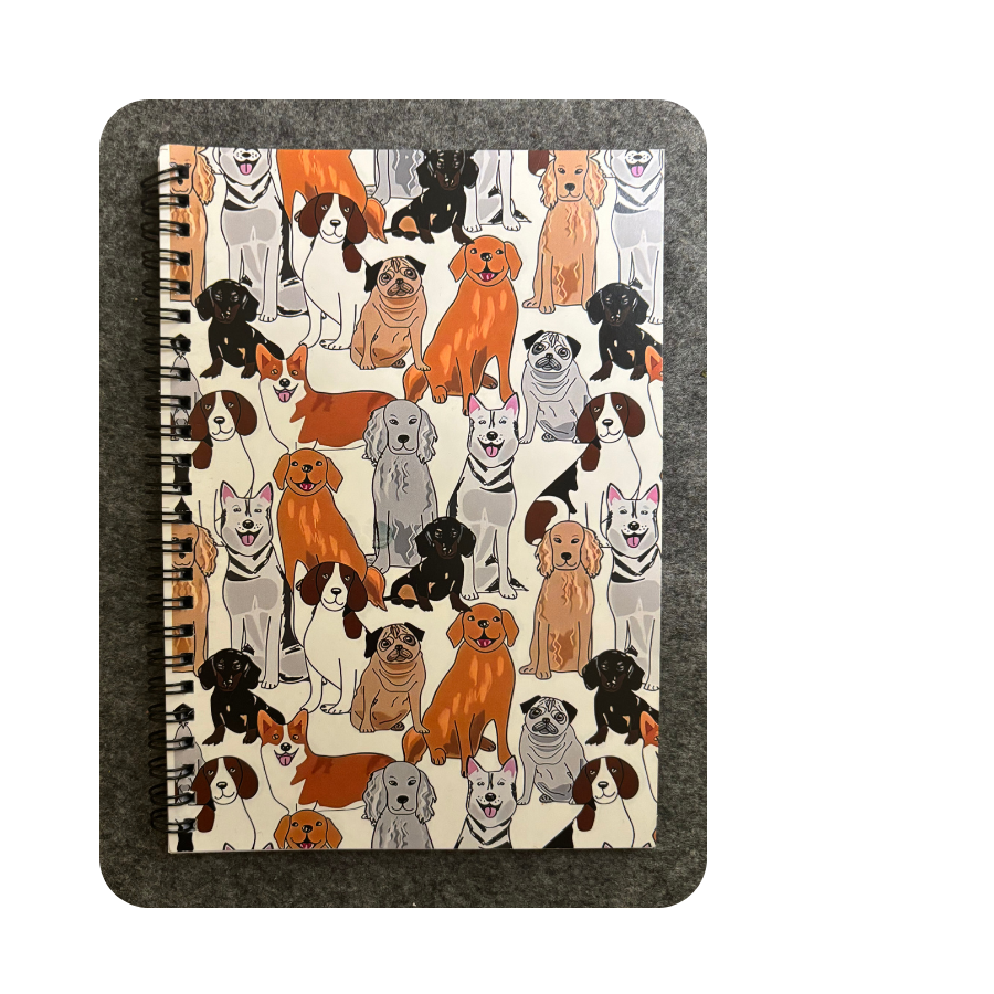 En anteckningsbok med hundmönster