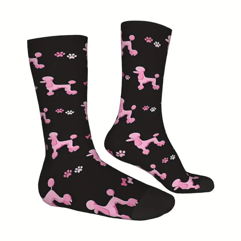 Coola strumpor med rosa pudlar på. Perfekt till vilken pudel-älskare som helst.